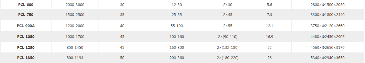 PCL沖擊式制砂機(jī)參數(shù)規(guī)格: