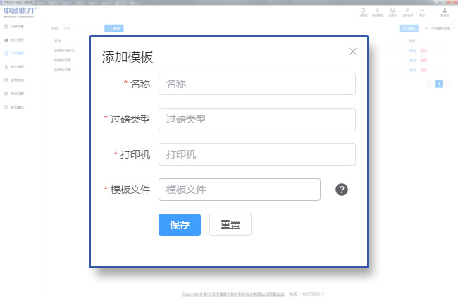 可添加、刪除票據(jù)模板,并根據(jù)系統(tǒng)內(nèi)置的變量,對模板中的模板名稱、過磅類型、模板文件名等自定義設(shè)置,根據(jù)不同場景選擇打印票據(jù)模板;