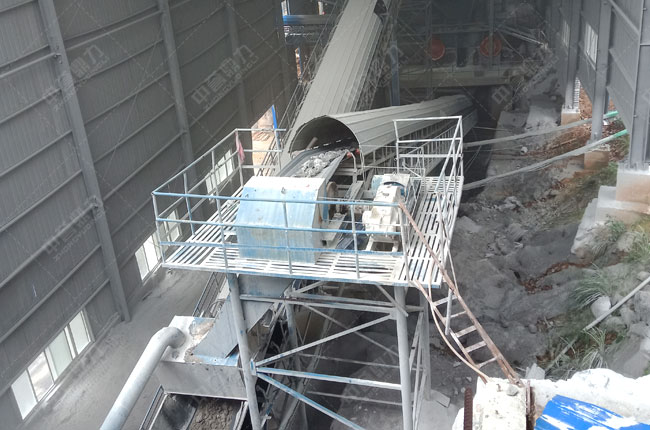 設(shè)備配置:ZSW600X150給料機+HD125顎式破碎機+SC315SC2圓錐破碎機+皮帶機