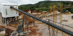 石頭原料使用振動(dòng)給料機(jī)設(shè)備輸送至破碎機(jī)進(jìn)行破碎處理,大型破碎機(jī)設(shè)備可以將大塊的石頭破碎成較小的物料,破碎后的石料再經(jīng)過(guò)振動(dòng)篩進(jìn)行篩分選級(jí),篩選出符合規(guī)格尺寸的石料,由成品輸送帶送至成品料區(qū),不符合規(guī)格的石料由返料皮帶返回至破碎機(jī)再次進(jìn)行破碎。根據(jù)生產(chǎn)需求破碎篩分后的一部分石料需要進(jìn)行制砂處理,使用制砂機(jī)設(shè)備將物料進(jìn)行細(xì)碎、整形破碎,加工成符合規(guī)格的砂子料。一般產(chǎn)線(xiàn)為提高砂料的品質(zhì),還會(huì)配置洗砂機(jī)對(duì)砂子進(jìn)行清洗,提高其質(zhì)量,然后由成品輸送帶送至成品料倉(cāng)。