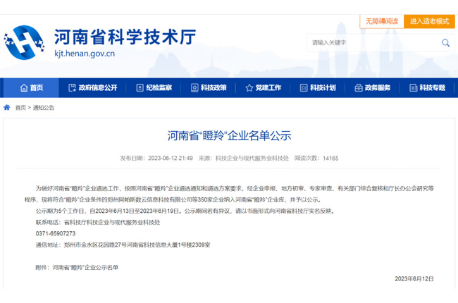 河南省“瞪羚”企業(yè)名單公示
