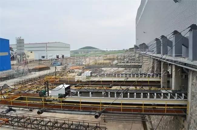 上圖為成品料料倉,布料皮帶機利用移動小車布料,提高石料存料量,每種產(chǎn)品存料量達到2.5萬噸,總存料量達到10萬噸。