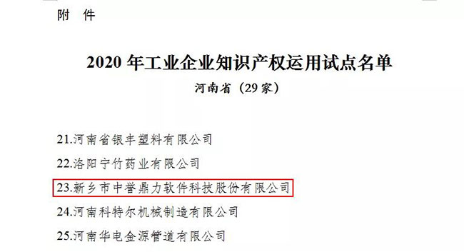 為深入實施家知識產(chǎn)權戰(zhàn)略,按照《制造業(yè)知識產(chǎn)權行動計劃(2018-2020年)》(工信部聯(lián)科【2018】239號)、《工業(yè)和信息化部辦公廳關于開展工業(yè)企業(yè)知識產(chǎn)權運用試點工作的通知》(工廳科【2020】725號)要求,經(jīng)企業(yè)自愿申報、地方與行業(yè)、形式審核等程序,近期,工業(yè)和信息化部辦公廳公布了工業(yè)企業(yè)知識產(chǎn)權運用試點企業(yè)名單。新鄉(xiāng)市中譽鼎力軟件科技股份有限公司榜上有名!
