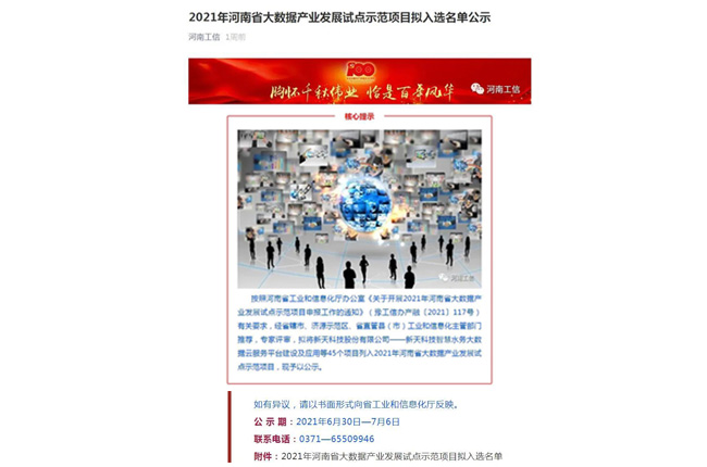 按照河南省工業(yè)和信息化廳辦公室《關于開展2021年河南省大數(shù)據(jù)產(chǎn)業(yè)發(fā)展試點項目申報工作的通知》(豫工信辦產(chǎn)融〔2021〕117號)有關要求,經(jīng)省轄市、濟源區(qū)、省直管縣(市)工業(yè)和信息化主管部門、評審,7月初,河南省工業(yè)和信息化廳產(chǎn)業(yè)融合辦公室公布2021年河南省大數(shù)據(jù)產(chǎn)業(yè)發(fā)展試點項目名單。