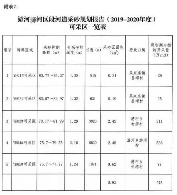 采砂河段位于游河浉河區(qū)吳家店鎮(zhèn)昌灣村河段至游河入淮口初,途經(jīng)吳家店鎮(zhèn)昌灣村,游河鄉(xiāng)的寺灣組、游河村、老廟村,長13千米,2019-2020年度開采總量978萬方,其中2019年度開采總量386.0萬m3,2020年度開采量592萬方。