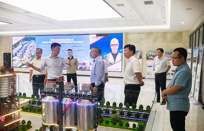 隨后,考察團(tuán)來到中譽(yù)鼎力智能化展示,實(shí)地參觀了中譽(yù)鼎力多位一體循環(huán)建材產(chǎn)業(yè)園項(xiàng)目沙盤,并觀看了公司相關(guān)介紹。