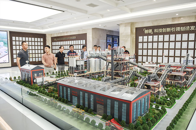 結(jié)束對(duì)中譽(yù)鼎力廠區(qū)的參觀,考察團(tuán)一行來(lái)到由中譽(yù)鼎力投資建設(shè)的衛(wèi)輝市藍(lán)天環(huán)保材料有限公司多位一體建材項(xiàng)目進(jìn)行實(shí)地調(diào)研,了解項(xiàng)目生產(chǎn)管理模式。