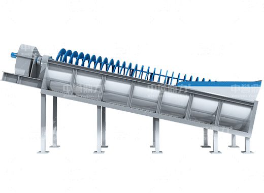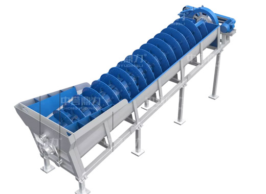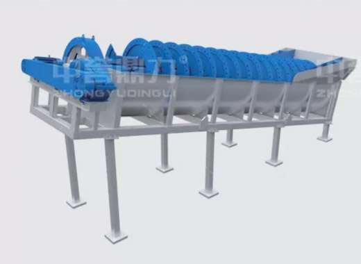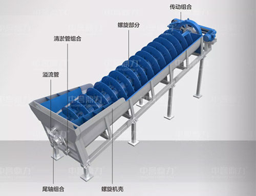 電動(dòng)機(jī)帶動(dòng)螺旋開始轉(zhuǎn)動(dòng),砂石進(jìn)入到水洗槽中,在螺旋葉片的帶動(dòng)下翻轉(zhuǎn),砂石快速的與水?dāng)嚢枞诤,使物料中的泥土等雜質(zhì)與砂分離,清洗掉的雜質(zhì)隨著溢流管流出,清洗干凈的砂石在螺旋葉片的帶動(dòng)下,推到高出的出料口排出水洗槽,完成砂石清潔。