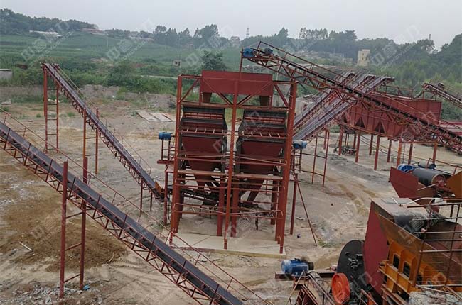 三、細(xì)碎后的物料被輸送到兩道并篩中進(jìn)行篩分,篩分出五種不同規(guī)格的成品料,由輸送帶送到成品料堆。成品粒度可按用戶的需求進(jìn)行組合和分級(jí)。