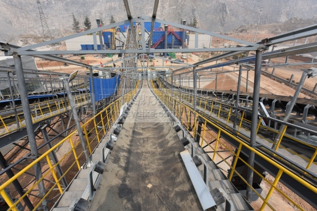時(shí)產(chǎn)2500噸骨料生產(chǎn)線工程項(xiàng)目主機(jī)采用PCZ1820,兩條生產(chǎn)線并列運(yùn)行的優(yōu)勢(shì),在物料整形設(shè)備上配置PC1220,對(duì)物料進(jìn)行進(jìn)一步整形,兩條生產(chǎn)線同時(shí)生產(chǎn),一條線檢修維護(hù)時(shí),另一條線可繼續(xù)生產(chǎn)。給料機(jī)為ZGC2050為兩用漏土型,預(yù)篩過的石料用同一條皮帶機(jī)運(yùn)送到除土篩進(jìn)行篩選,生產(chǎn)比較潔凈的成品料。