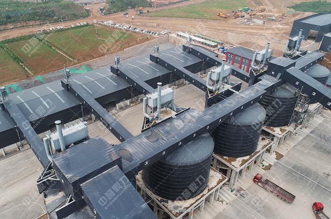 4、圓形儲料倉對面設(shè)有成品料緩沖庫,通過輸送機送至各自成品料平庫內(nèi),可實現(xiàn)淡季存料、旺季銷售,節(jié)省轉(zhuǎn)運費用,避免用料高峰期無料可尋。