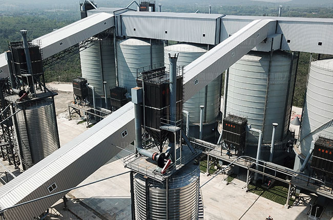 特點二:成品料分別儲存于5座圓形儲料倉內(nèi),各倉底均設(shè)有自動裝車系統(tǒng)和稱重系統(tǒng);