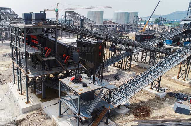 山東東平達(dá)順建材時(shí)產(chǎn)1500噸砂石生產(chǎn)線設(shè)備配置:DLZG2050振動(dòng)給料機(jī)、DLPCZ1820重型錘式反擊破碎機(jī)、DLPC1622整形式破碎機(jī)、DL3YKZ3680振動(dòng)篩、DLZSJ1218制砂機(jī)、FL1800動(dòng)態(tài)選粉機(jī)、皮帶輸送機(jī)、斗式提升機(jī)、除塵器等礦山設(shè)備及智能礦山管理系統(tǒng)