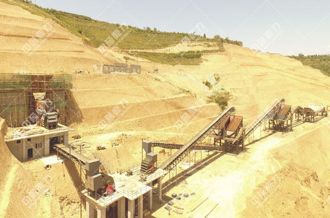 下圖為銅川平安建材石料廠生產(chǎn)線景圖,整條生產(chǎn)流程簡(jiǎn)單明了,采用顎破+整形錘破的二級(jí)破碎方式。