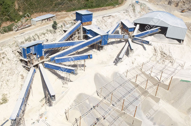 下圖為破碎后的物料進(jìn)行篩分,篩分出的成品物料分別送到料倉中,不滿足要求的送回破碎機(jī)進(jìn)行再次破碎。