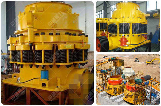 圓錐式石子粉碎機(jī)(時(shí)產(chǎn)200噸,Φ1750、Φ2200型號(hào)),下料粒度不過230毫米、成品粒度10-50毫米