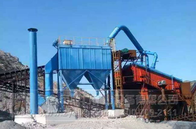上圖為脈沖袋式除塵器安裝在砂石骨料生產(chǎn)線(xiàn)中進(jìn)行除塵