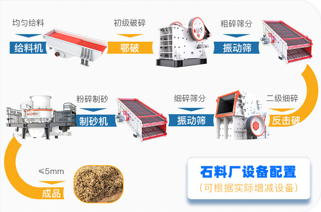 一般制砂生產(chǎn)線需要用到給料機(jī)、破碎機(jī)、篩分機(jī)、制砂機(jī)、輸送機(jī)、洗砂機(jī)等。依照不同用戶的原料、產(chǎn)能、出料、場地、預(yù)算等不同,以下就沖擊式制砂機(jī)成套設(shè)備中的主要設(shè)備進(jìn)行介紹: