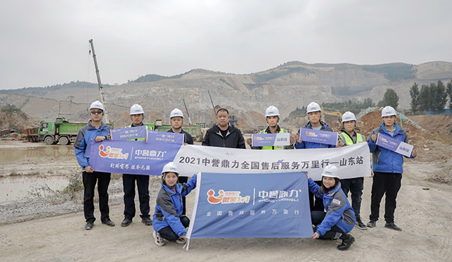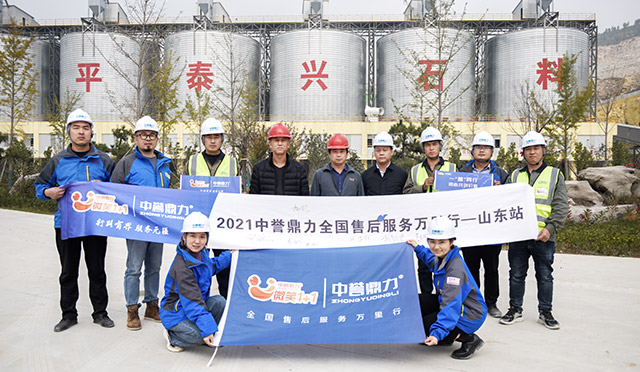 第十四站山東慧豐建材10月25日,中譽(yù)鼎力山東售后服務(wù)萬里行團(tuán)隊(duì)來到慧豐建材時(shí)產(chǎn)時(shí)產(chǎn)1000噸骨料生產(chǎn)線項(xiàng)目現(xiàn)場(chǎng)